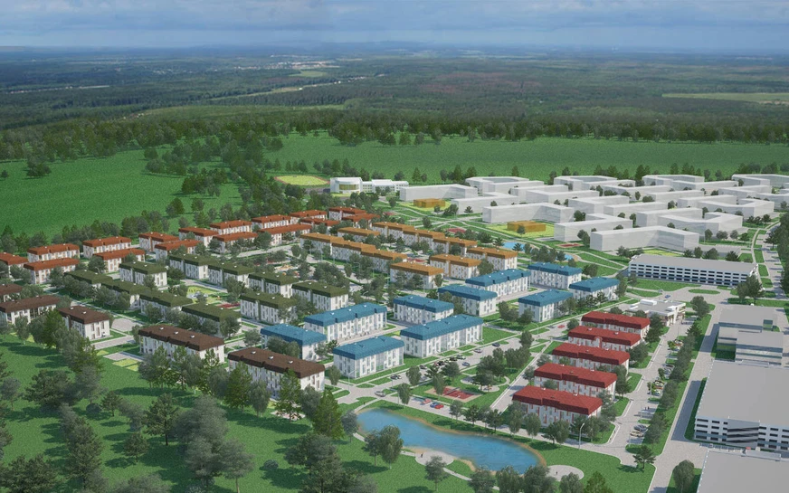 По плану застройщика, в проект войдет 53 жилых корпусов, высота которых колеблется от 3 до 4 этажей. Они располагаются рядом с деревней Репниково на участке в 20 гектаров. Строительство ведется по монолитной технологии.