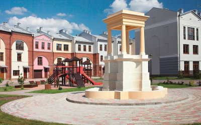 У каждого таунхауса индивидуальная отделка. Чтобы воссоздать определенную атмосферу, застройщик использовал аркады, фонтаны и колоннады.