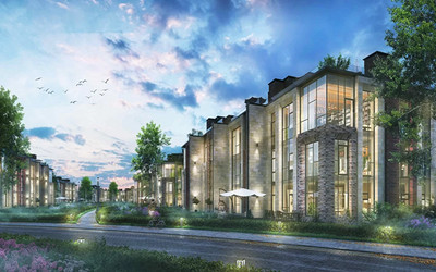 Таунхаусы выделяются высокими потолками и панорамным остеклением.
