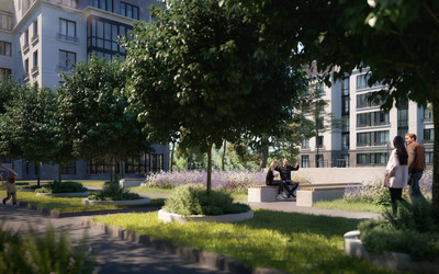 Дворы будут закрыты от машин. Застройщики планируют установить детские площадки из экологически чистых материалов. Кроме этого, девелопер сохранит часть парка, где возводится здание. Тут оборудуют пирс, прогулочные и велосипедные дорожки, пруд, зоны для шашлыка, отдыха с гамаками, шезлонгами, а также шахматными столиками. Парк площадью 3.7 га будет передан городу. Здесь смогут прогуливаться все желающие.