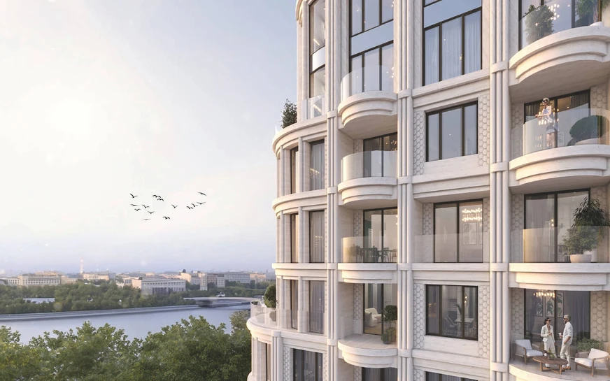 Клубный дом представляет собой 3 корпуса высотой от 15 до 24 этажей. Комплекс будет с башнями переменной этажности, что позволит создать красивые виды из всех квартир. Панорамные окна выходят на собственный оформленный сад, Москву-реку и столичные достопримечательности.