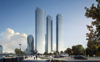 Все три здания комплекса объединены общим основанием. В нем будут построены:
