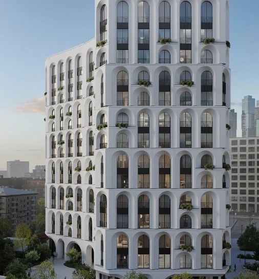Стильный дизайн, сводчатые окна, изысканность, мне комплекс понравился и своим камерным двором, где не будет машин и где будет тихо и зелено. Хочу для себя, 2 комнатные апарты.