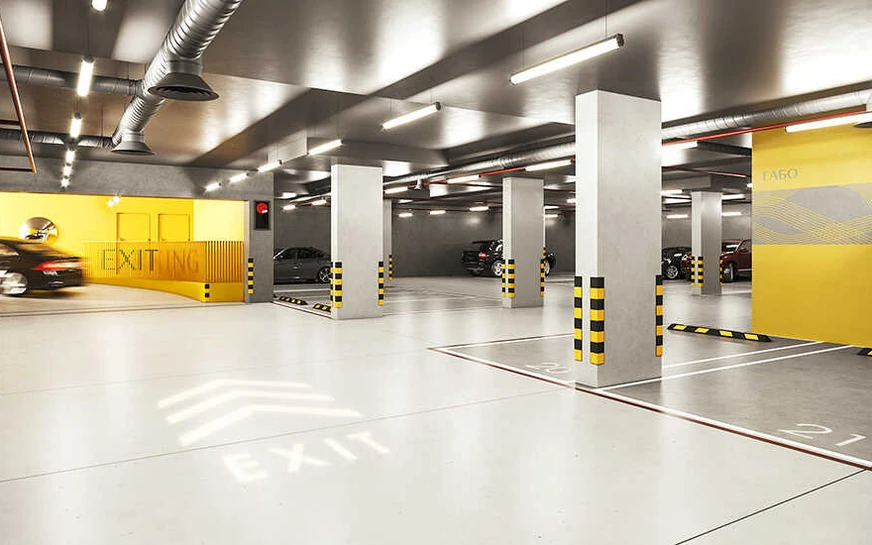 В жилом комплексе предусмотрен отапливаемый подземный паркинг на 74 машиноместа. Также имеются 32 кладовых помещения.