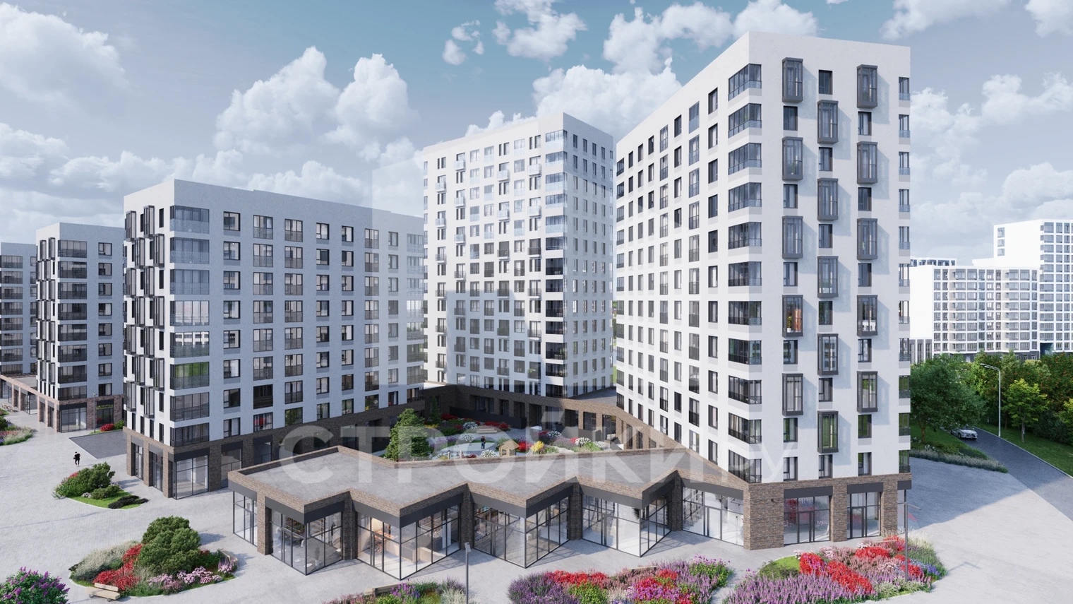 Объект недвижимости возводит застройщик «Стройком» в Новомосковском автономном округе на Калужском шоссе. «Новые Ватутинки» включают в себя три микрорайона: Центральный, Южный и Десна.