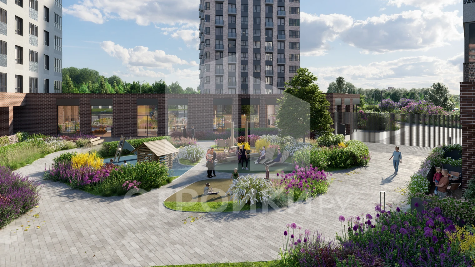 На территории комплекса предусмотрены: