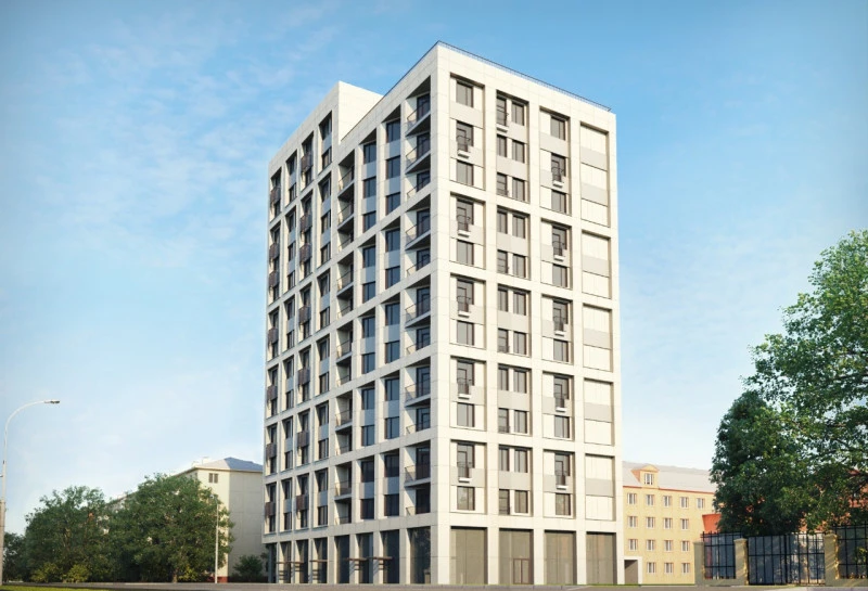 Всего в комплексе будет одно здание переменной этажности, то есть, на 12-14 этажей. В общей сложности там появится 112 квартир. Минимальная площадь студий составляет 27.51 м², а двухкомнатных - от 50.28 м². Начальная цена на студии составит 7 300 000 рублей, а минимальная стоимость самых больших квартир - 13 200 000. Каждая из них будет класса "комфорт".