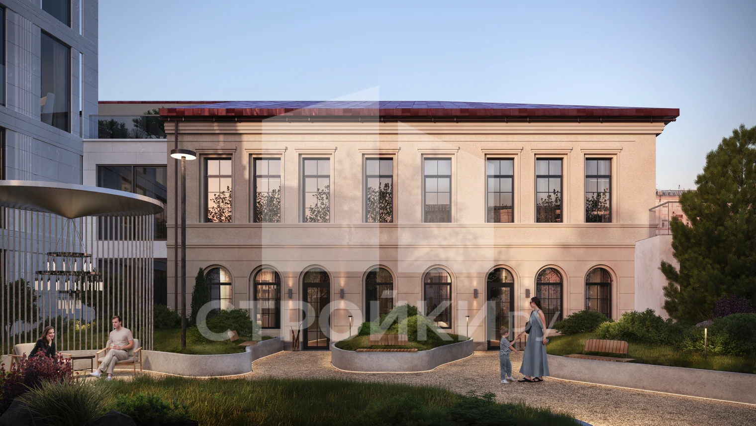 Дизайнерские беседки, зоны отдыха, детская площадка.