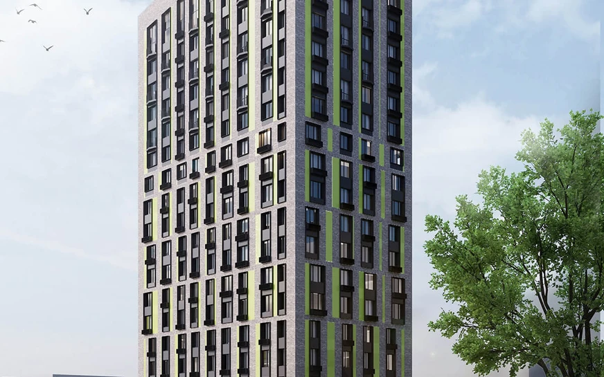 На придомовой территории планируется возвести архитектурные элементы и зелёные насаждения.