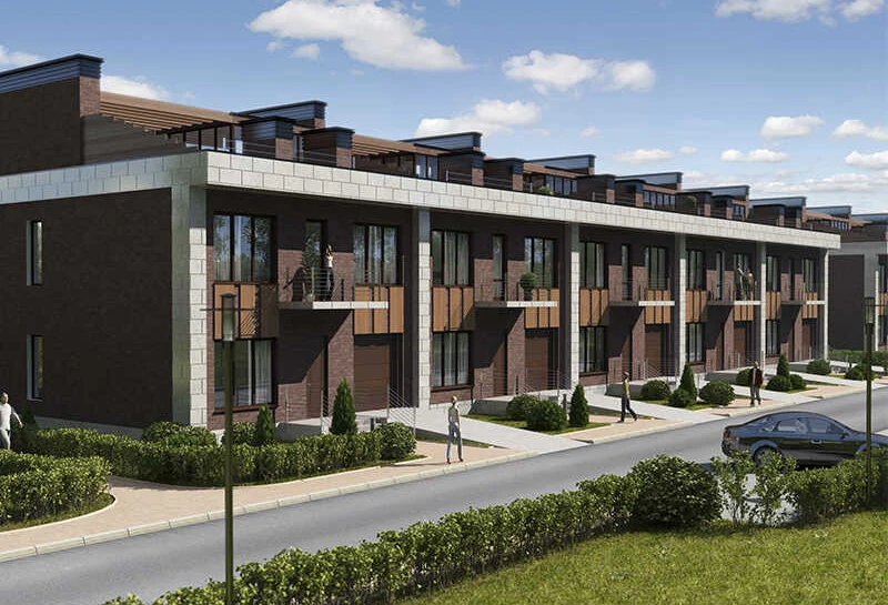 Стоит отметить, что в ЖК отражаются идеи Ф. Л. Райта — известного архитектора 20 века. Комплекс занимает участок свыше 7 гектаров. В него входит 28 земельных наделов. Максимальная площадь придомовой территории составляет 21 сотку. Площадь таунхаусов достигает 420 м². При желании собственники могут дополнительно организовать летнюю веранду на крыше. В продажу таунхаусы и коттеджи поступили без отделки. В домах проведены все необходимые центральные коммуникации и оптоволоконные сети.