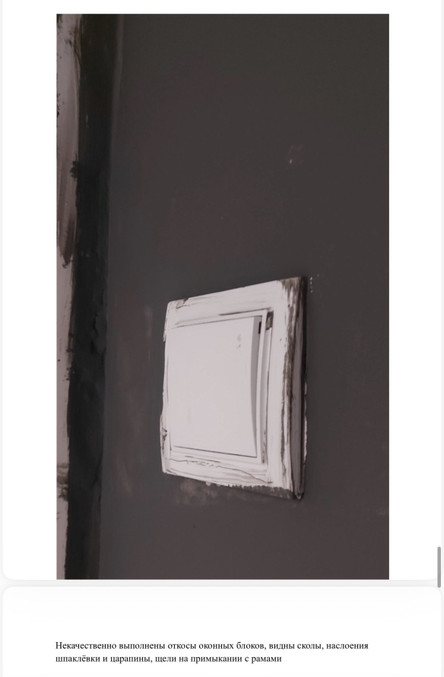 Базовая предчистовая отделка отвратительна: окна в сколах и текут, стены кривые, под стяжкой треснутве трубы отопления и подачи воды, вся электрика на скрутках.